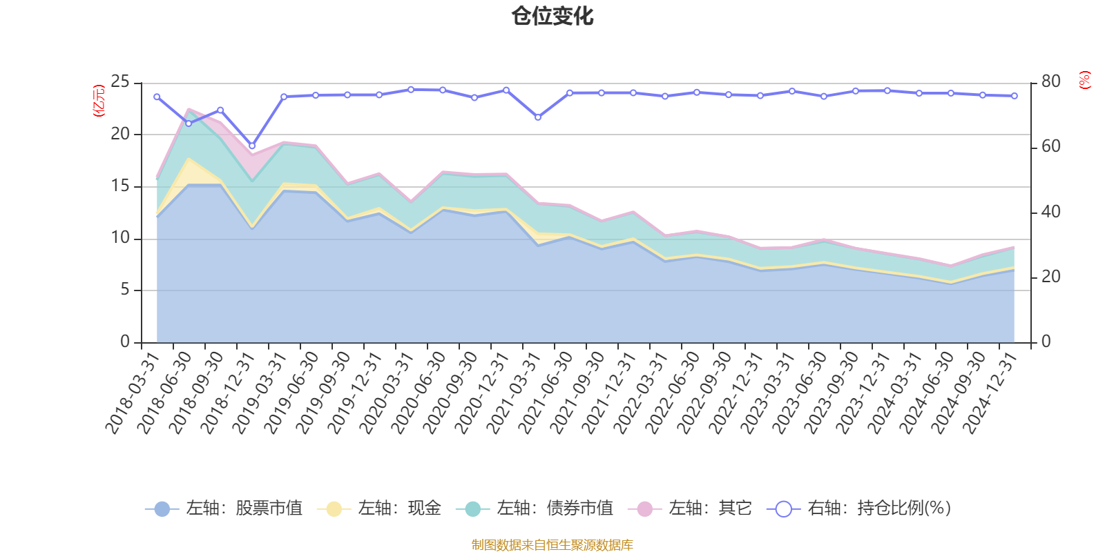 据定期报告数据统计,近三年平均股票仓位为76.63%,同类平均为85.68%。2020年一季度末基金达到77.91%的最高仓位,2018年末最低,为60.6%。
