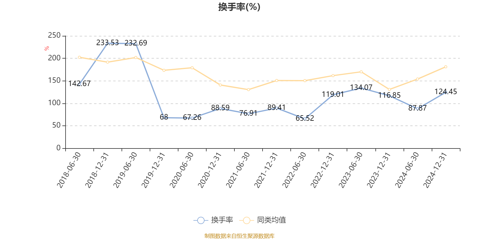 截至2024年12月31日,基金最近一年换手率约208.87%,持续5年低于同类均值。