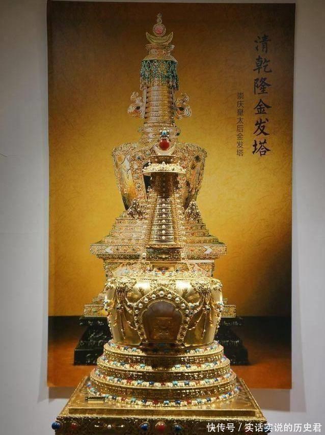 正是因为这个原因,钮钴禄氏死后为我们留下了这件珍贵的文物。这座金发塔收藏在故宫,极尽奢华,使用了3009两黄金,高1.53米,配合各种绿松石、珊瑚、紫檀木等珍稀材料制作而成。而且,为了制作这座金发塔,乾隆下了20道圣旨,亲自审定了样稿,最后集合全国优秀的工匠完成了这件精美的文物。